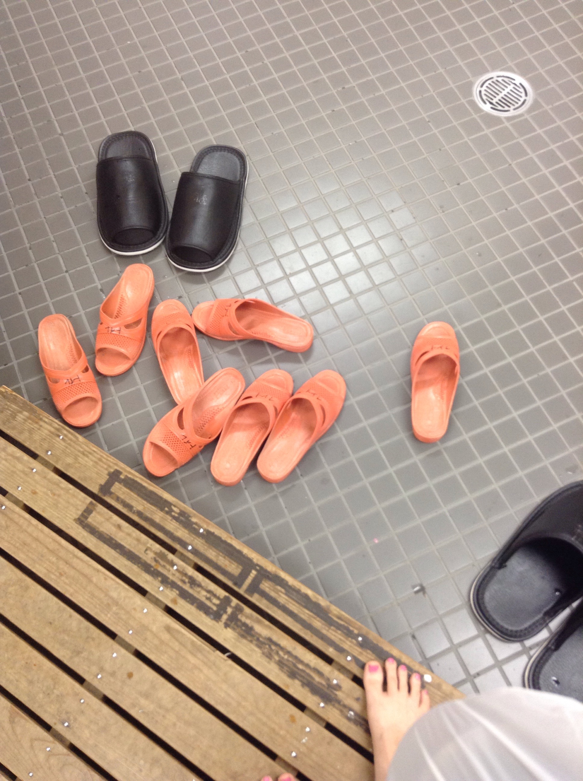 In Japan, everyone takes their shoes off at the entrance to the venue. Handy bathroom slippers are provided for use in the restroom – and you be nasty if you try to skip using them!