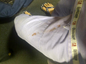 Anyhow, I made more sweat angels while the no gi class warmed up – I counted myself already warm. We did a really fun mount escape, then sparred for a bit. I did really well for the two rounds I got to roll. Afore mentioned purple belt was teaching class and was (thankfully) picky about my sparring partners. Destroyed my first partner, then had a very good match with one of our blue belts. We apparently have similar game and therefore had some awesome scrambles.
