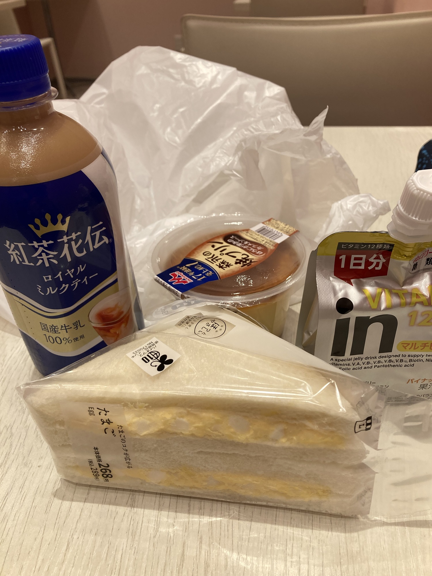 At this point I realized that I really needed to get back to my hotel and lie down so that I could get some rest after the day’s events. My headache just wasn’t going away and there was really no need for me to be pushing myself since the rest of this trip was officially vacation with very little by way of actual itinerary. I had eaten a salmon bento box at the venue before I headed out but definitely needed to feed myself a bit more before going to sleep. I didn’t have the energy left for much interaction so enter the convenience store rescue. I went for familiar (to me) easily digestible items with the plan to get myself some real food to eat the next day. Milk tea, egg sandwich, pudding, and vitamin jelly pack for the win!