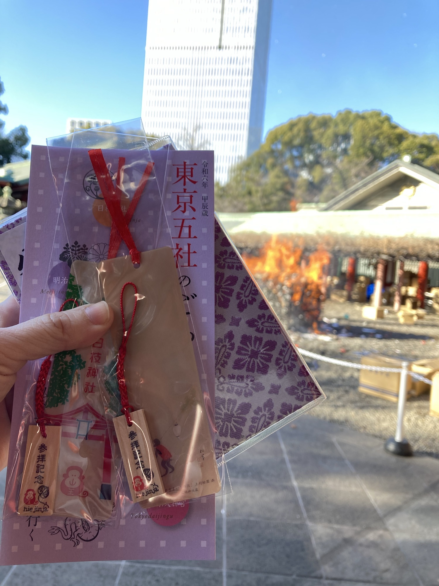 After this I felt like I finally had my feet under me and decided to jump on the train for a short ride to the Hie shrine. I unexpectedly arrived during the time they were busy burning the previous year’s amulets and was enjoying watching the process while I waited for the priestess to finish inking the shrine goshuin into my book. When I saw the locals taking photos and video of the burning process I took that as a cue it was okay to take photos as well.
