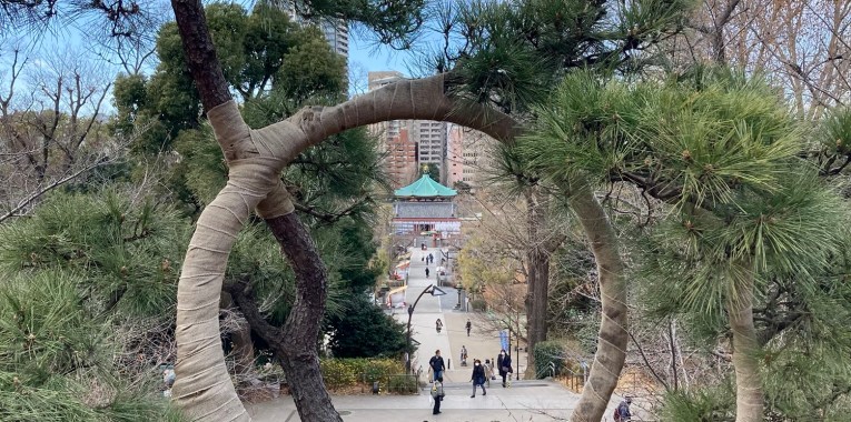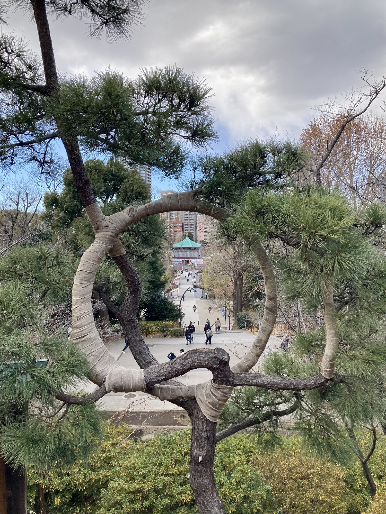 My next stop was #4 – up the hill to the Kiyomizu Kannon-do Temple. Here they have trained a tree into this circular shape so that standing at the main entrance you can look down the hill and see the Shinobazunoike Bentendo temple down below in the middle of the pond.